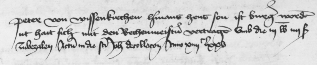 The remaining text is executed in a fluent chancery Bastarda, with the exception of folios 2v to 5v. These contain a copy of Charles V’s 1541 armorial grant – previously discussed in my first article9 – penned in a somewhat hurried Kurrent script.
